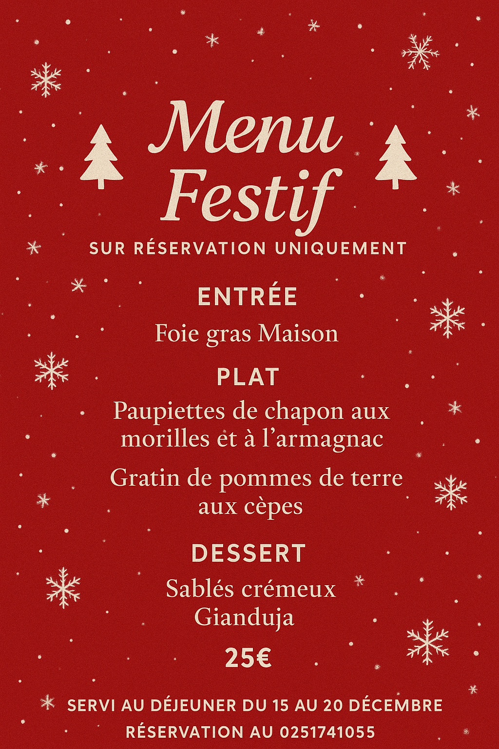 Menu a thème 1 samedi midi par mois.